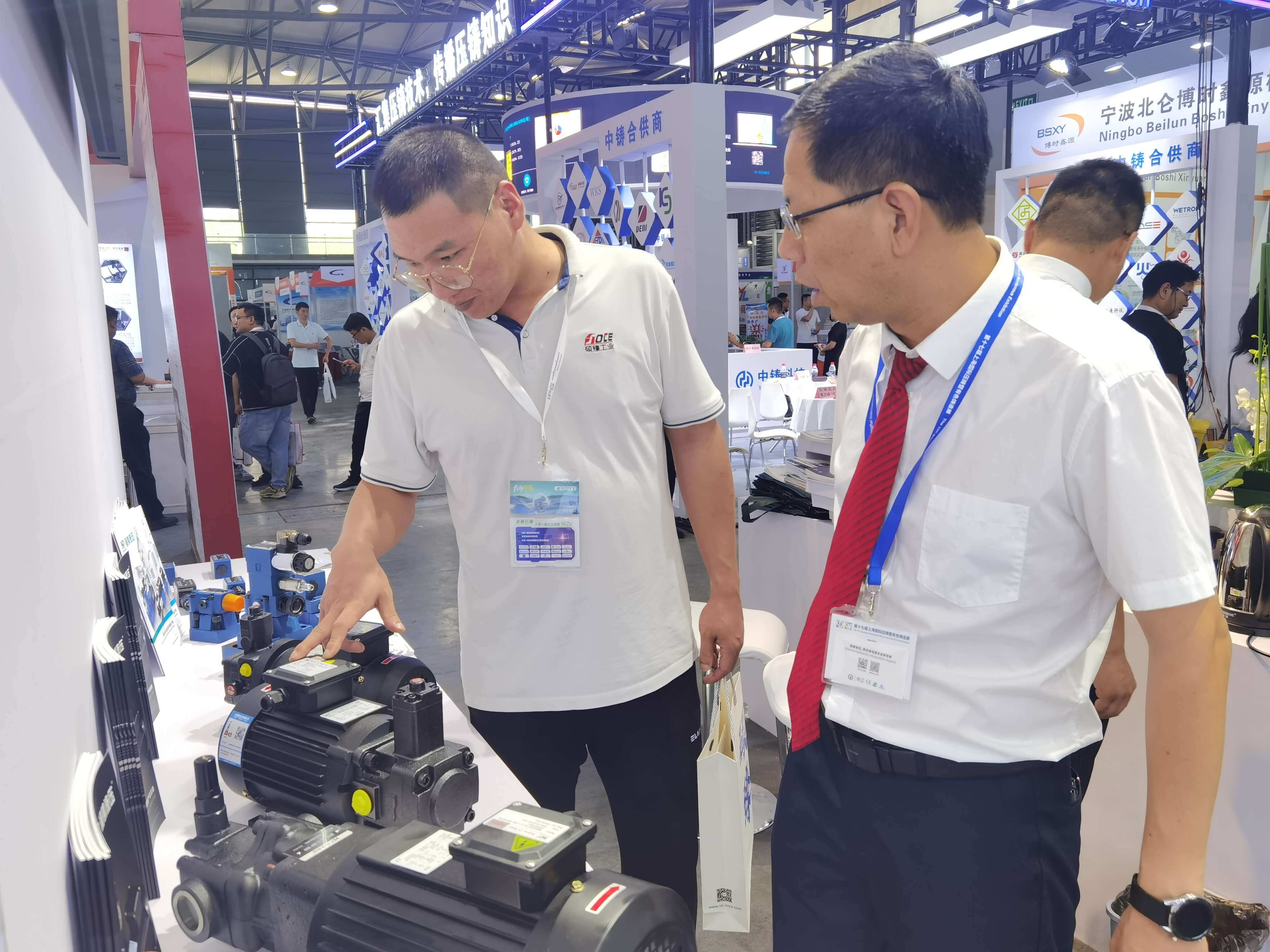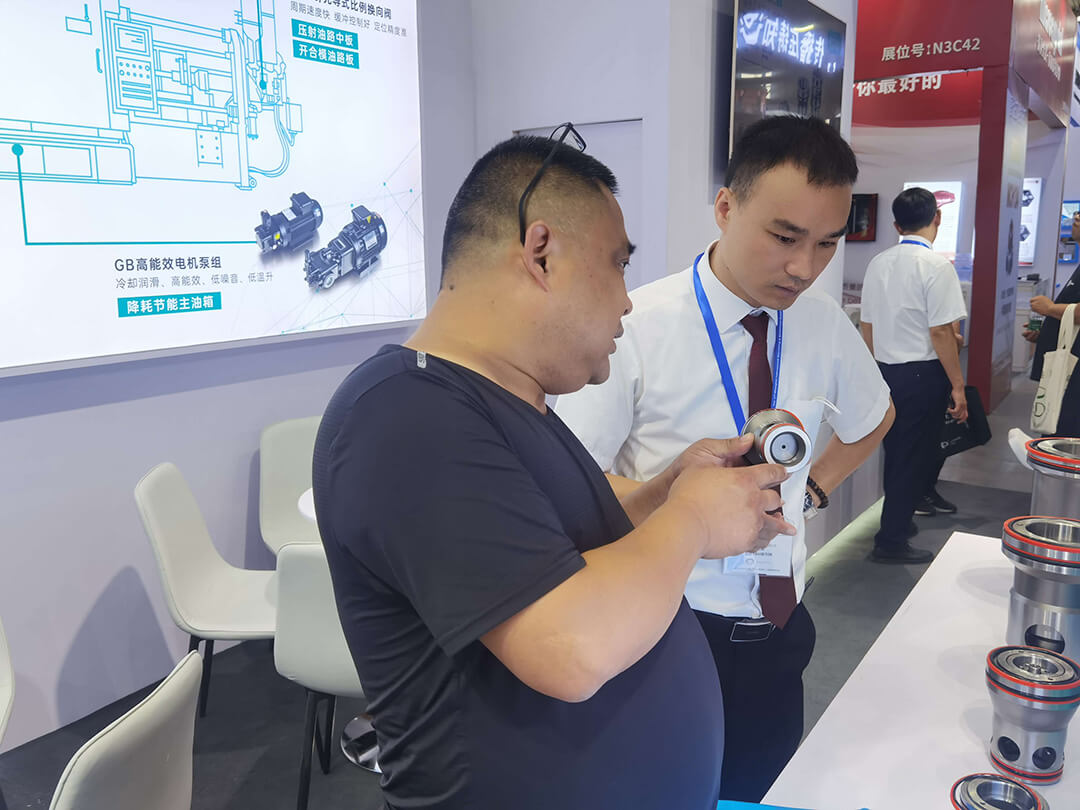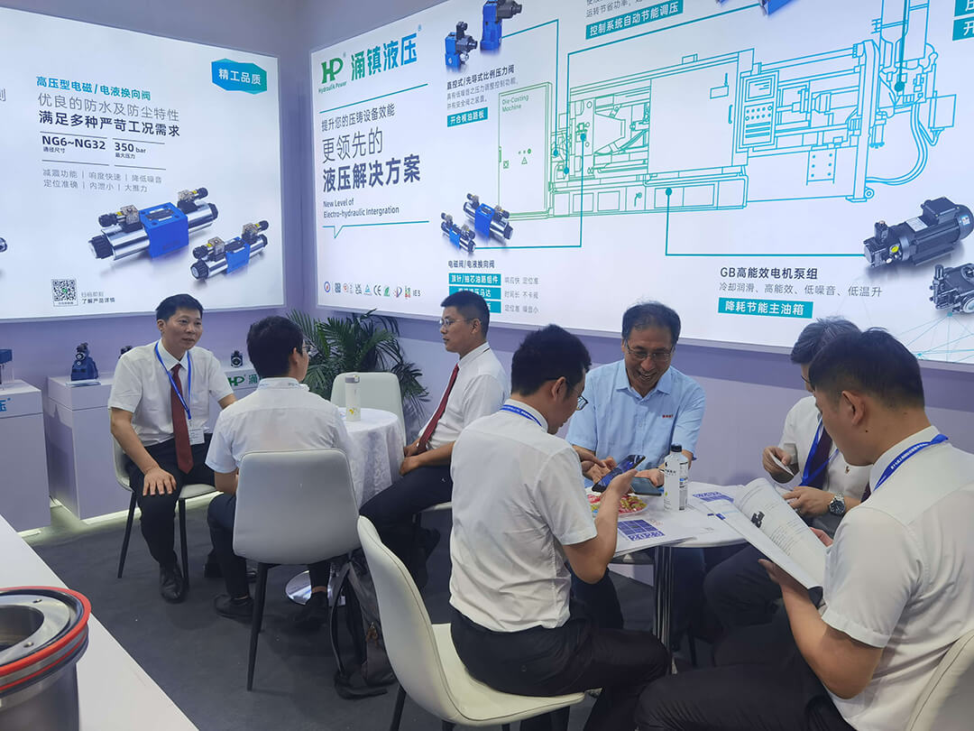 涌镇液压展台上展示了最新的液压元件适用于压铸设备,助力提升压铸效能,吸引了众多专业观众前来参观和交流。涌镇液压的技术人员向观众介绍了公司的产品和技术,现场进行了技术交流和研讨,展示了涌镇液压在压铸行业的实际应用以及解决方案。